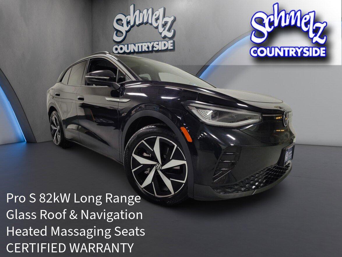 FACTORY CERTIFIED Included in this Locally Owned 1-OWNER PRO S 82kW Long Range that was Purchased New at Schmelz Countryside. If you ready to embark on a journey towards a greener, more cost-effective future, and want to avoid rising gas prices, look no further than this Pearl Black ID.4 SUV. This cutting-edge spacious all electric SUV vehicle (EV) includes Low Cost of Ownership: Say goodbye to fuel stations and oil changes and hello to savings! With the ID.4 Pro S, you'll experience a dramatic reduction in your overall cost of ownership. Enjoy long-term savings while making a positive impact on your wallet and the environment. Features That Impress: Instant Torque of the Electric Motor, Dual Power HEATED and MASSAGING Seats with Memory for Driver and Passenger, Touchscreen NAVIGATION, VW IQ Drive with Lane Departure Warning with Lane Assist, Blind Spot Monitoring, Adaptive Pace Keeping Cruise Control, Glass Panoramic Roof with Power Sunshade, Power Liftgate, Wireless Charging with Apple CarPlay, Android Auto, SiriusXM Satellite Radio, and Much more!